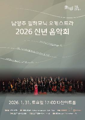 【공연】【공연】 [남양주 필하모닉 오케스트라 2026 신년음악회] (다산아트홀) 장소 다산아트홀 기간 2026년 1월 31일 ~ 2026년 1월 31일 공연시간 2026.1.31.(토) 17:00 입장권 가격 전석 10,000원 관람등급 초등학생 이상 문의 [남양주 필하모닉 오케스트라 2026 신년음악회] (다산아트홀)예매처: NOL티켓(구 인터파크) 티켓오픈: 2026.1.14.(수) 12:00 공연일시: 2026.1.31.(토) 17:00관람연령: 초등학생 이상 공연장소: 다산아트홀 티켓가격: 전석 10,000원 목록보기