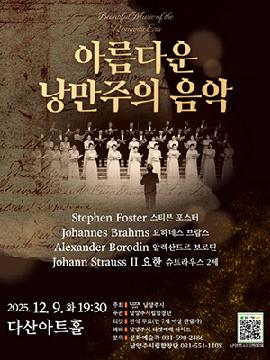 시립합창단 기획공연 <클래식 세계여행> 포스터, 브람스 등 낭만주의 시대의 합창 * 티켓 오픈: 11월 25일(화) 오후 2시 * 예매는 공연 3시간 전, 취소 및 변경은 공연 1일 전 오후 5시까지 가능합니다. * 본 공연은 1인 5매까지 예매 가능합니다. * 본 공연은 비지정좌석제로, 공연장 입장 순서대로 착석하시면 됩니다. * 티켓 배부는 공연 시작 1시간 전부터 시작합니다. * 관객 입장은 공연 시작 30분 전부터 시작합니다. * 공연장 주변이 혼잡하여 공연 시간보다 일찍 공연장에 도착해 주시기 바랍니다. · 공연일시: 12월 9일(화) 오후 7시 30분 · 러닝타임: 60분 · 관람연령: 만 7세 이상 관람가능(생년월일 증빙자료 지참 필수) · 관람료: 무료