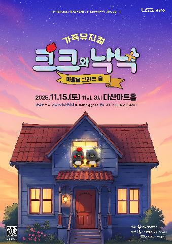 일정 검색 유형선택 전체보기 전체보기 날짜 : 검색하기 이전월 2025년 11월 다음월 공연일정 일정 달력(2025년 11월) : 일, 월, 화, 수, 목, 금, 토요일의 일정 SUN MON TUE WED THU FRI SAT 1 2 3 4 5 6 7 8 9 10 11 12 13 14 15 16 17 18 19 20 21 22 23 24 25 26 27 28 29 30 2025년 11월 15일 문화일정 시립합창단 <해설이 있는 오페라> 장소 : 날짜별 공연 장소와 시간 상이 기간 : 25-11-15 ~ 25-11-29 관람등급 : 만 7세 이상 관람 가능 김문정 음악감독 토크콘서트 - 2025년 마을마다콘서트 장소 : 남양주시청 제1청사 다산홀(경춘로 1037, 금곡동) 기간 : 25-11-15 관람등급 : 12세 이상 [가족 뮤지컬] 크크와 낙낙 장소 : 다산아트홀 기간 : 25-11-15 관람등급 : 36개월 이상 관람가능(생년월일 증빙자료 지참 필수)