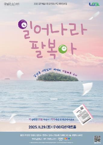 일정 검색 유형선택 전체보기 전체보기 날짜 : 검색하기 이전월 2025년 11월 다음월 공연일정 일정 달력(2025년 11월) : 일, 월, 화, 수, 목, 금, 토요일의 일정 SUN MON TUE WED THU FRI SAT 1 2 3 4 5 6 7 8 9 10 11 12 13 14 15 16 17 18 19 20 21 22 23 24 25 26 27 28 29 30 2025년 11월 29일 문화일정 [연극] 일어나라 팔복아 장소 : 다산아트홀 기간 : 25-11-29 관람등급 : 만 7세(2018년생) 이상 관람가능(생년월일 증빙자료 지참 필수) 시립합창단 <해설이 있는 오페라> 장소 : 날짜별 공연 장소와 시간 상이 기간 : 25-11-15 ~ 25-11-29 관람등급 : 만 7세 이상 관람 가능